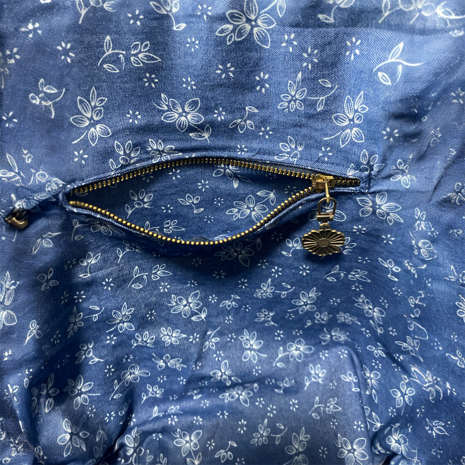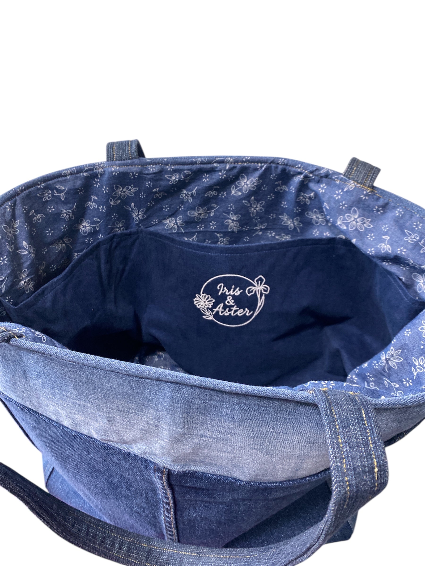 Large structured Tote bag crafted from repurposed Levi jeans with a floral polycotton liner.